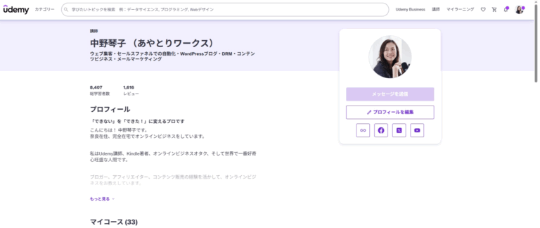 Udemyは国内最大級のオンライン学習プラットフォームです。日本ではベネッセが提携しています。私はUdemyでオンラインコースを販売しています。私の情報発信として。