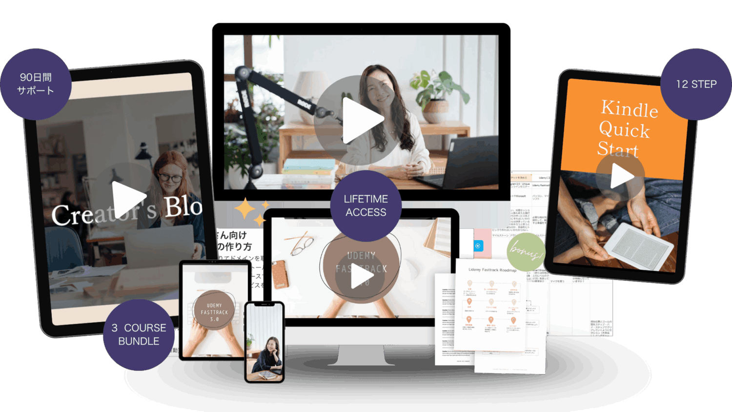 違いは3点あります。私が2018年から現在まで活動している現役のUdemy講師であること。次に、お問い合わせを逃さないためのウェブサイトの構築を行うこと。そして単にUdemyにコースを出すだけでなく、Kindle出版も行うことです。